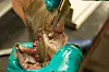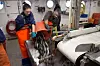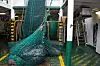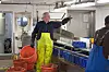 When the fish reach the lab, they slide down a chute onto a conveyor belt where the scientists are waiting to sort them. Some fish are taken for age-determination, while others have samples taken to be used for research projects back home.