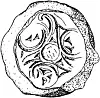 Two of the mountings found in Denmark have different shapes from the other ones. One of them is square and the other is formed as a male mask. These may have been attached to a variety of objects, but cannot be as easily linked to specific church and monastery fixtures as the circular mountings.